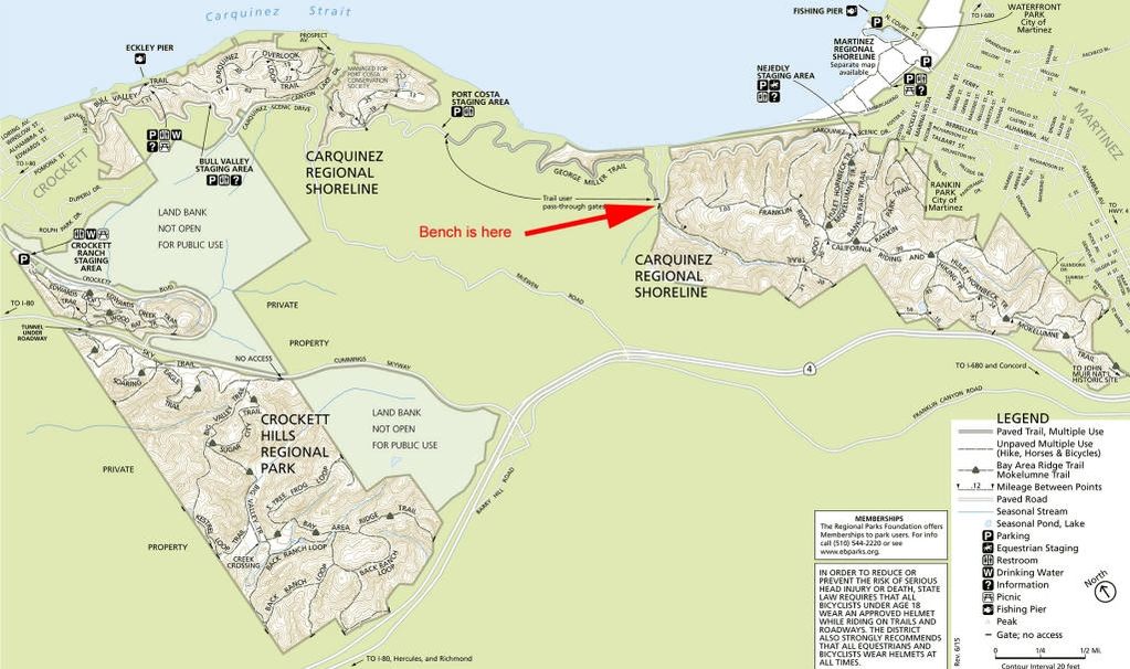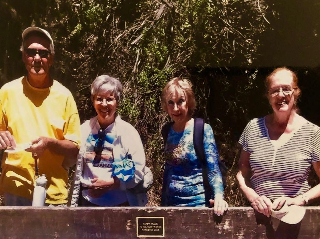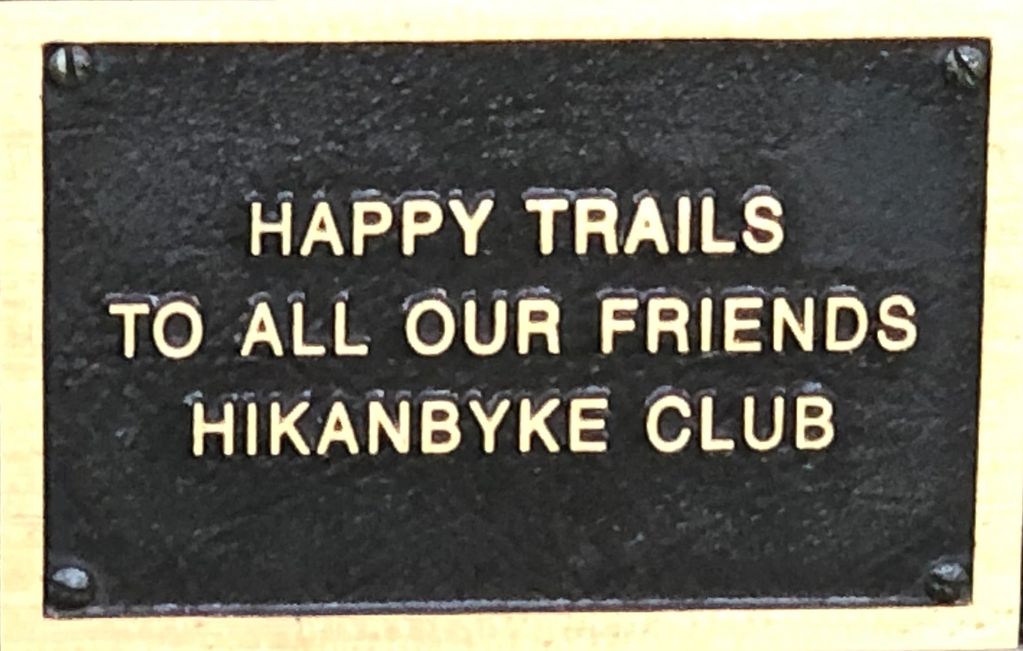 Many years ago, the Hikanbyke cycling and hiking group in the Bay Area sponsored a Memorial Bench at an East Bay Regional Park to commemorate those friends who are now deceased. Occasionally we have a group hike and/or bike ride to the bench to remember those friends. But anyone is welcome to visit at any time.
